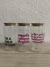 ¡Presentamos el Vaso Amada! Un hermoso vaso de vidrio con tapa de bambú y popote de vidrio, diseñado para recordarte lo amada que eres ante los ojos de Dios. Este vaso no solo es funcional, sino que también sirve como una afirmación diaria.