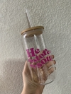 ¡Conoce el Vaso "He Restores My Soul"! Este vaso de vidrio es tu nuevo aliado para esos momentos de relajación. Con su tapa de bambú y un popote de vidrio, cada sorbo se convierte en una pausa perfecta para meditar en la inspiradora frase del Salmo 23.